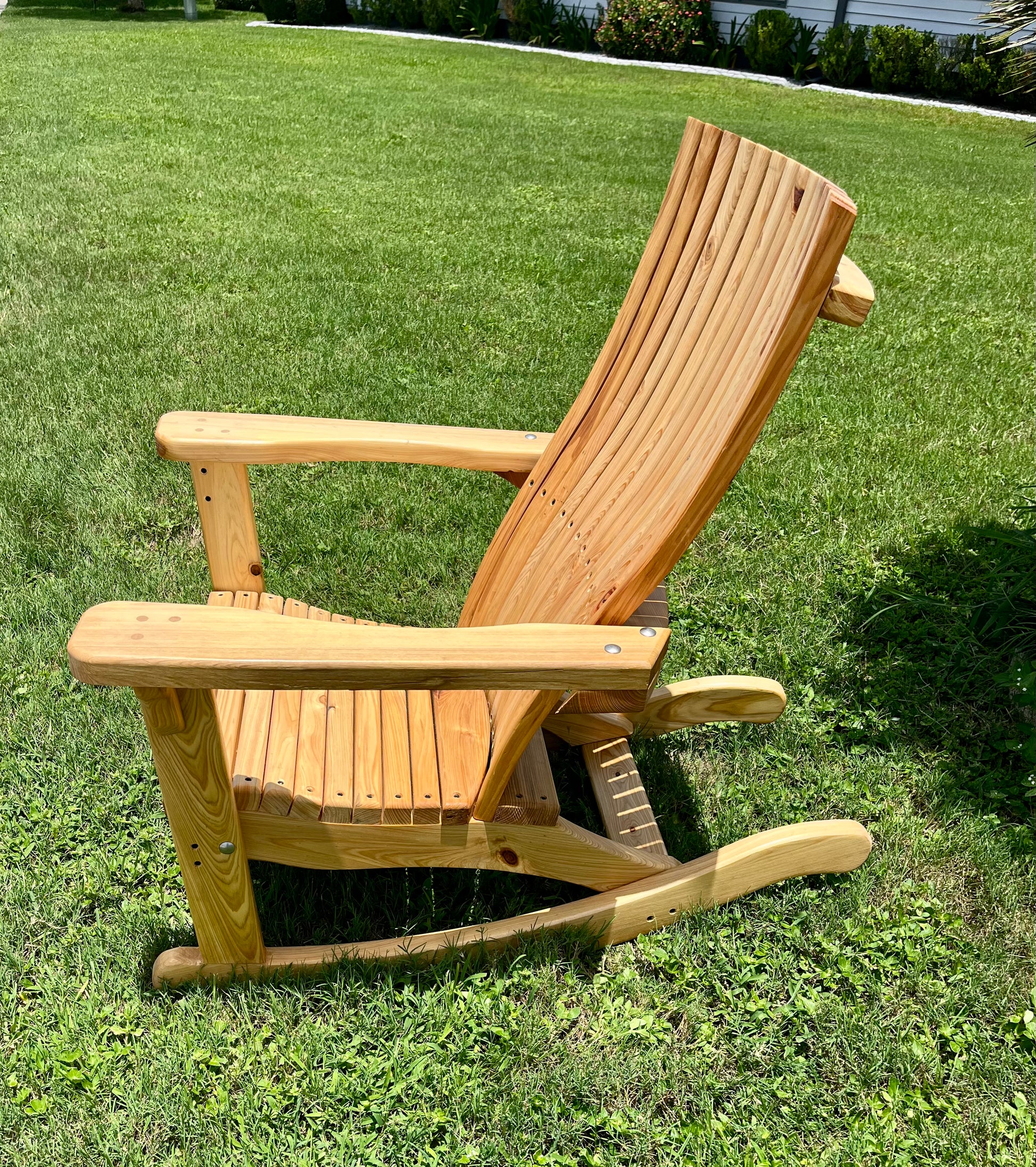 These are a new take on the classic Adirondack chair. These have an ergonomic back and are built for comfort! The curved back and features make for an elegant design and look. This is the Cadillac of Adirondack chairs. Available in both standard style chair and rocker.